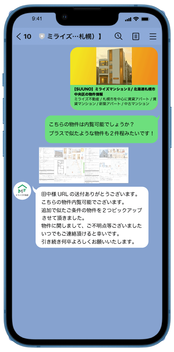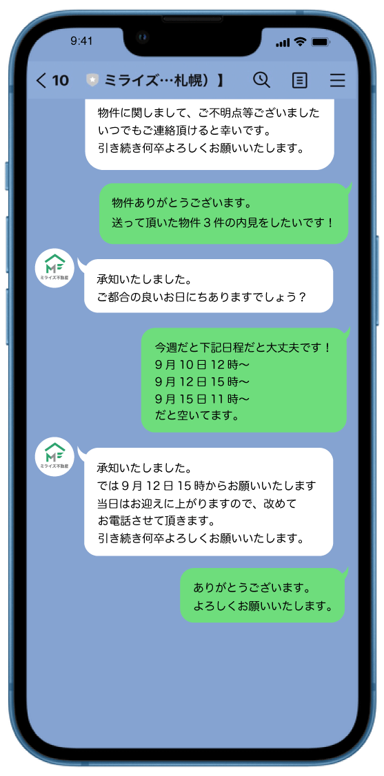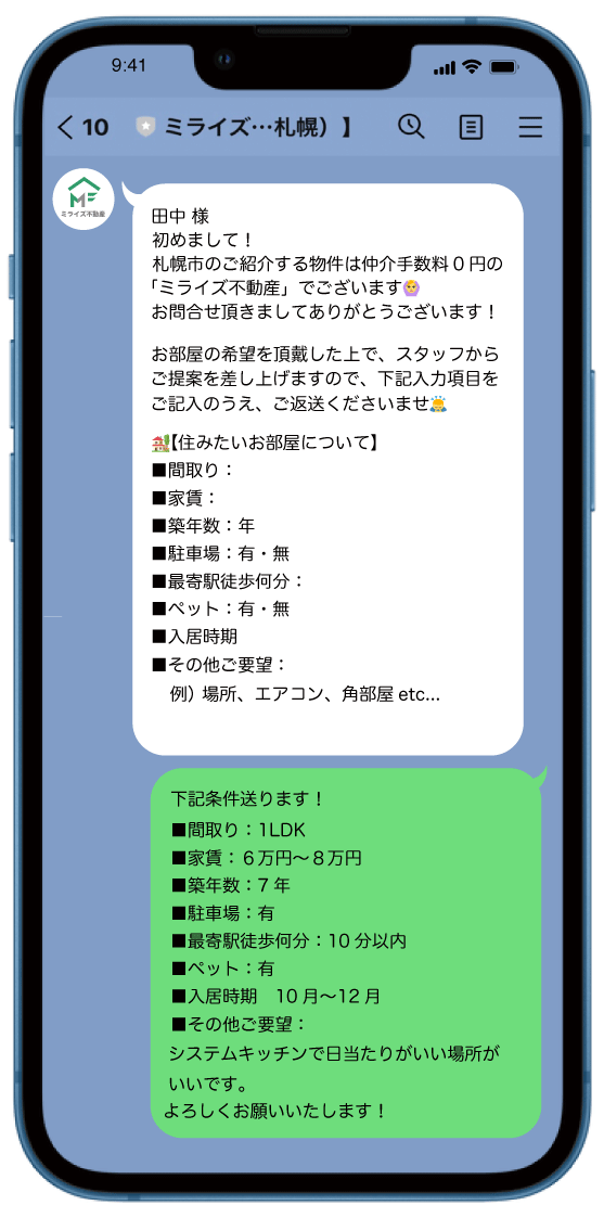 LINEを使ってお客様のご要望、ご質問をお答えし、お部屋のご提案をさせていただきます。